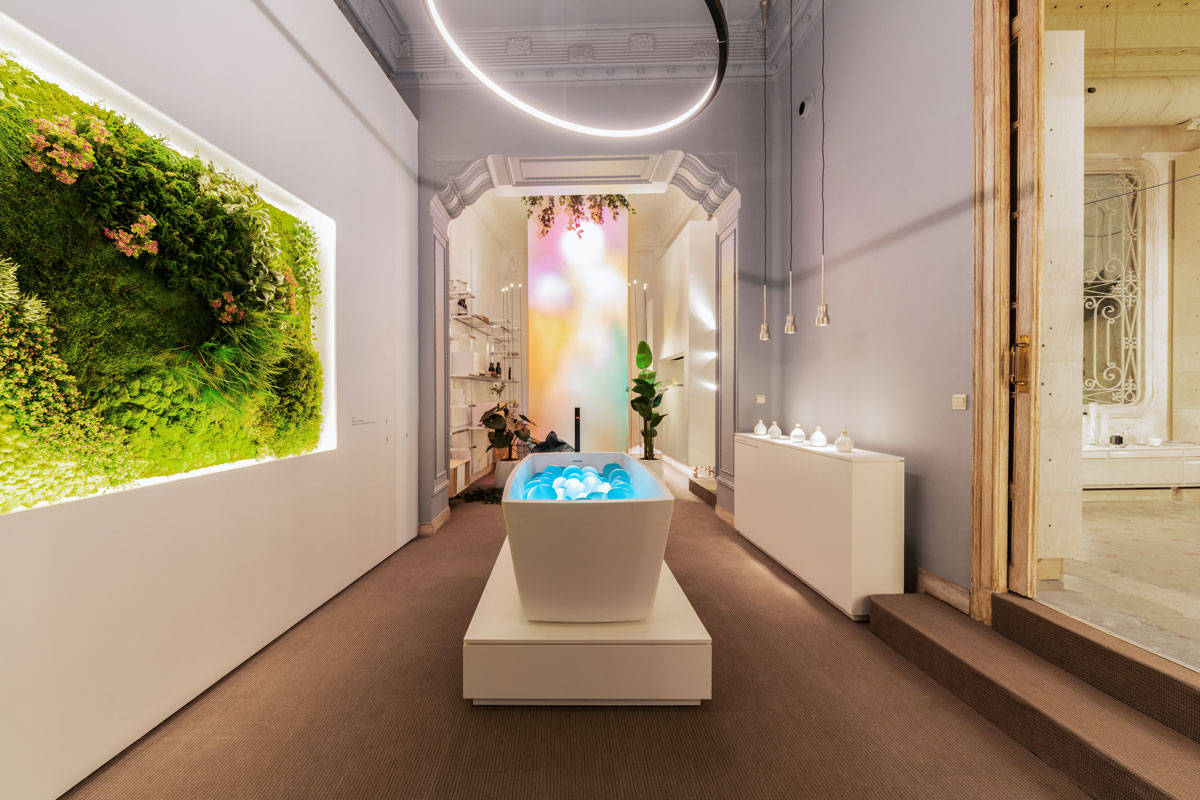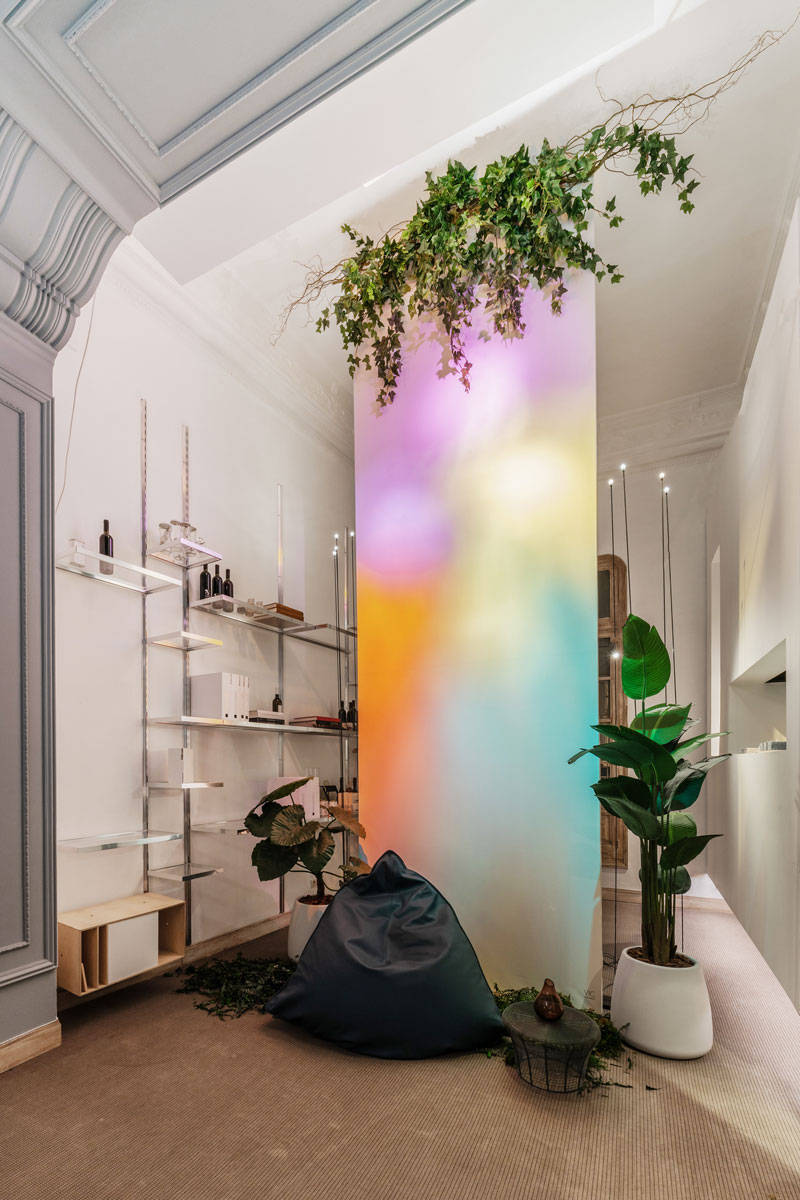 Se han estimulado los sentidos mediante las tonalidades, los olores, los sabores y, sobre todo, la explosión lumínica de colores, para disfrutar de los ambientes primaverales trasladados al spazio de valencia.