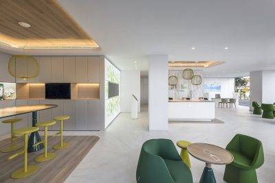 La transparencia se genera en zonas abiertas y dinámicas que invitan al cliente a vivir una experiencia mas cómoda. Se eliminan todas las barreras arquitectónicas posibles para crear un espacio mas libre que permita de un solo vistazo localizar y diferenciar cada zona o servicio que la compañía ofrece.