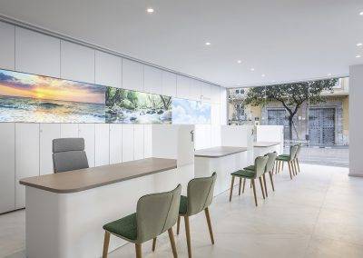 Para conseguirlo, primero se ha buscado una paleta de materiales donde la simplicidad de texturas y los colores dan forma arquitectónica a los espacios de una forma fácil pero potente a la vez. Formas simples, envolventes y cómodas pero con un punto de vanguardia, son las características a las que responden todo el mobiliario propuesto para generar cada zona de las tiendas.
