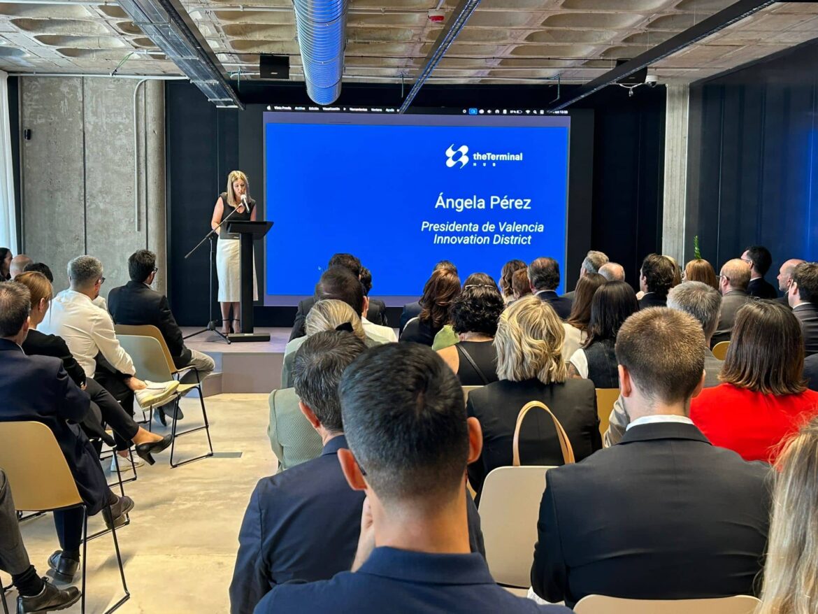 En segundo lugar ha intervenido Ángela Pérez, Presidenta de Valencia Innovation District. Pérez ha comenzado señalando que el proyecto, “disruptivo y que será una referencia internacional en innovación” ha tardado en cristalizar “seis años más de lo esperado”. Pérez ha afirmado que espera que The Terminal Hub se asiente en el “cinturón de innovación, tecnología y emprendimiento de la Marina” y sea a su vez “un espacio de interacción con las universidades valencianas”.