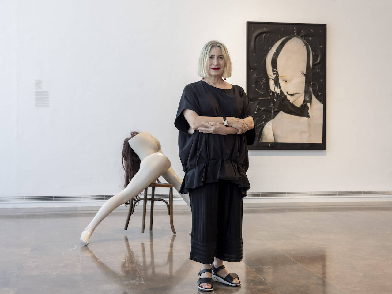 Carmen Calvo ante la obra «No espero al otro que también soy yo», 2021, de la colección de la artista. Foto: Miguel Lorenzo.