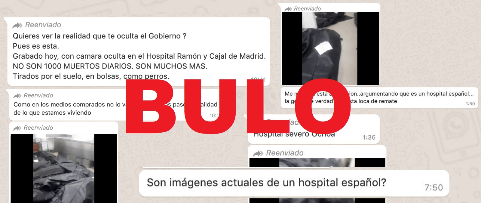 Circula por internet un vídeo en el que se dice que “es la realidad que te oculta el Gobierno”, que está grabado “con cámara oculta en el Hospital Ramón y Cajal de Madrid”, pero también que es “el Hospital Severo Ochoa” de Madrid, que “no son 1.000 muertos diarios” que son “muchos más tirados como perros”. Es un bulo: el vídeo fue grabado en el Hospital General Norte IESS Los Ceibos de Guayaquil (Ecuador).