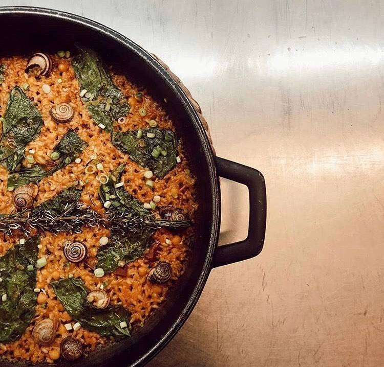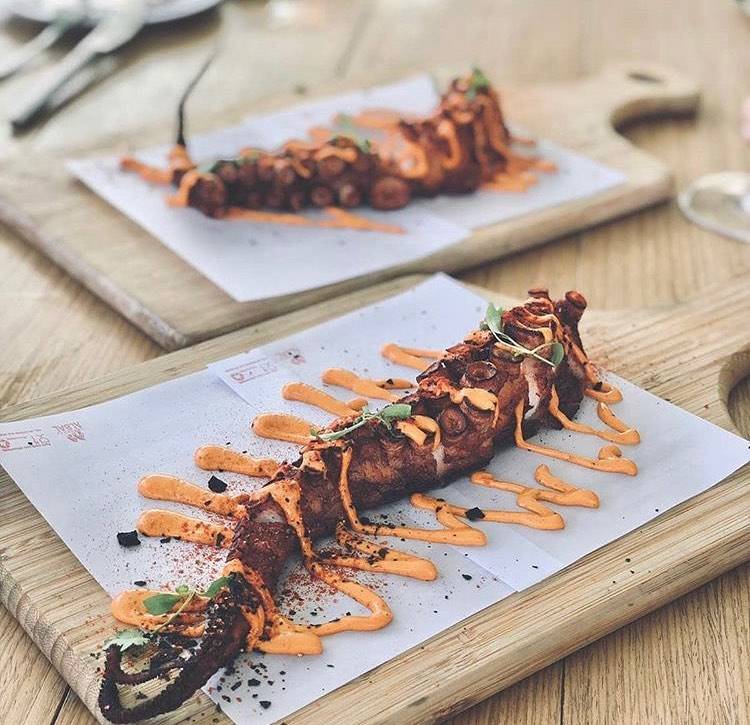 Pulpo de roca, con mahonesa de mojo picón Arrós amb bledes