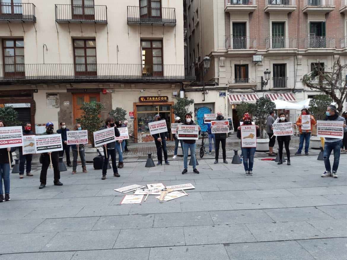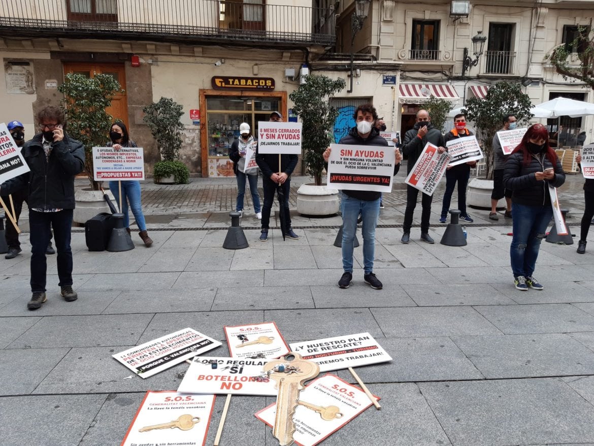 Con pancartas, bajo el mensaje principal “SOS Generalitat Valenciana: la llave la tenéis vosotros”, y un amontonamiento simbólico de llaves en el suelo, han puesto de manifiesto su “desesperación” ante el duro golpe económico y moral que está suponiendo para el sector la crisis sanitaria.