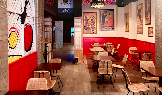 Su inte­rio­ris­mo, basa­do en los tópi­cos de la cul­tu­ra espa­ño­la, reúne ele­men­tos tan repre­sen­ta­ti­vos como peque­ñas cabe­zas de toros rojas, car­te­les a tama­ño real de his­tó­ri­cas corri­das, patas de jamón dora­das col­ga­das del techo, y un sin­fín de deta­lles “typi­cal spa­nish” que com­po­nen el esce­na­rio per­fec­to para dis­fru­tar de una expe­rien­cia úni­ca en pleno cen­tro de la ciu­dad.