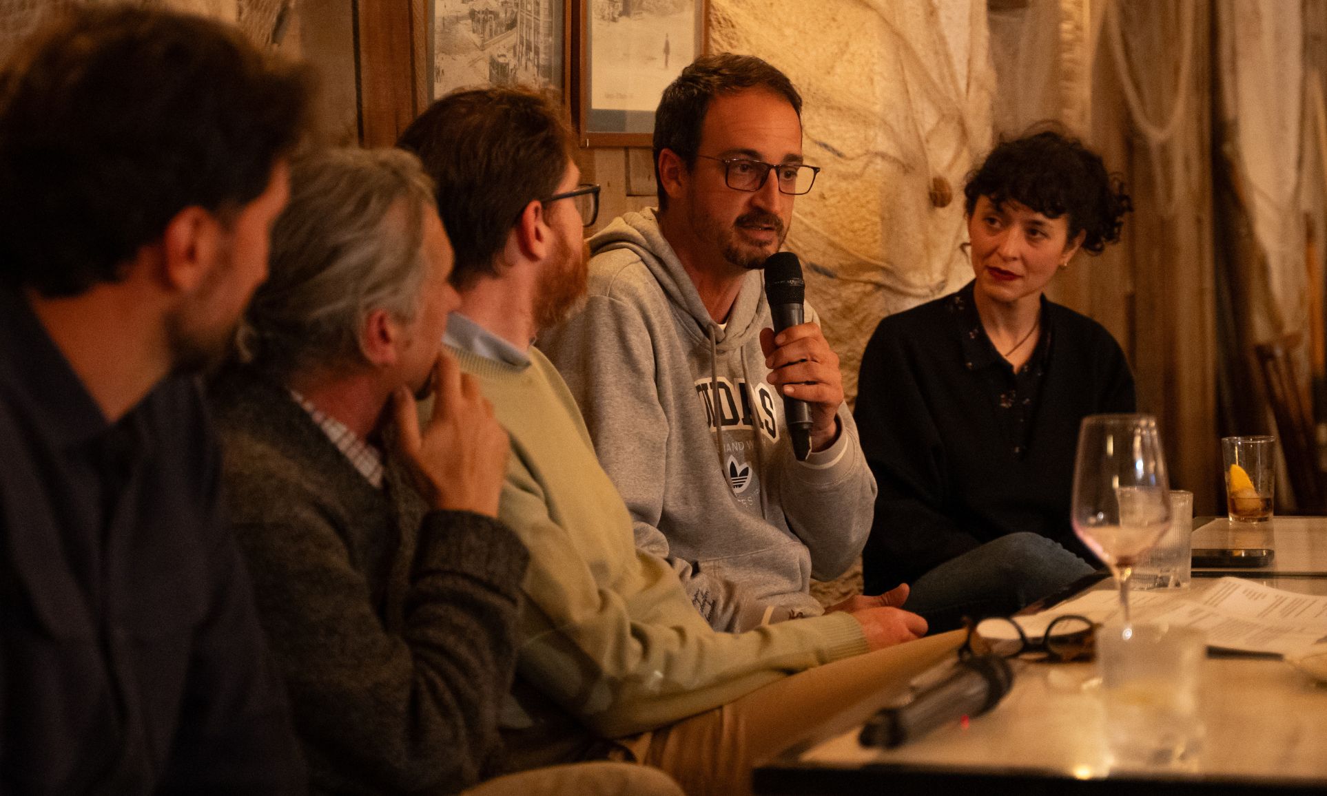 La conversación estuvo moderada por el comunicador gastronómico Ferran Salas y reunió a cuatro invitados vinculados al sector agrícola valenciano: Enric Navarro, agricultor e ingeniero agrónomo al frente del proyecto Terra i Xufa; Alba Cebrián, impulsora de Malaerba; Carlos García, agricultor y proveedor de Chelva; y Nando Durà, productor de arroz, cítricos y kakis y divulgador del mundo agrario.