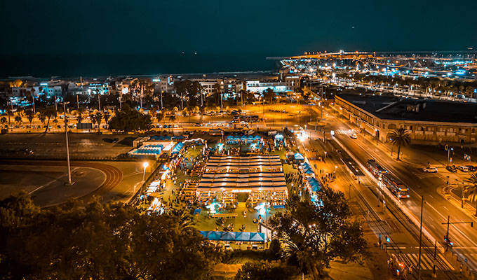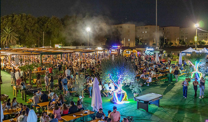 El recin­to, de más de 6.000 m2, cuen­ta con 350 mesas al esti­lo ale­mán y una lla­ma­ti­va deco­ra­ción con guir­nal­das de luces led. Ade­más, el jar­dín cuen­ta con más de 300 ejem­pla­res de vege­ta­ción entre pal­me­ras (livis­to­nas, cycas y washing­to­nias), coco­te­ros y oli­vos, que pos­te­rior­men­te se devol­ve­rán al vive­ro en las mis­mas con­di­cio­nes que se reco­gie­ron.