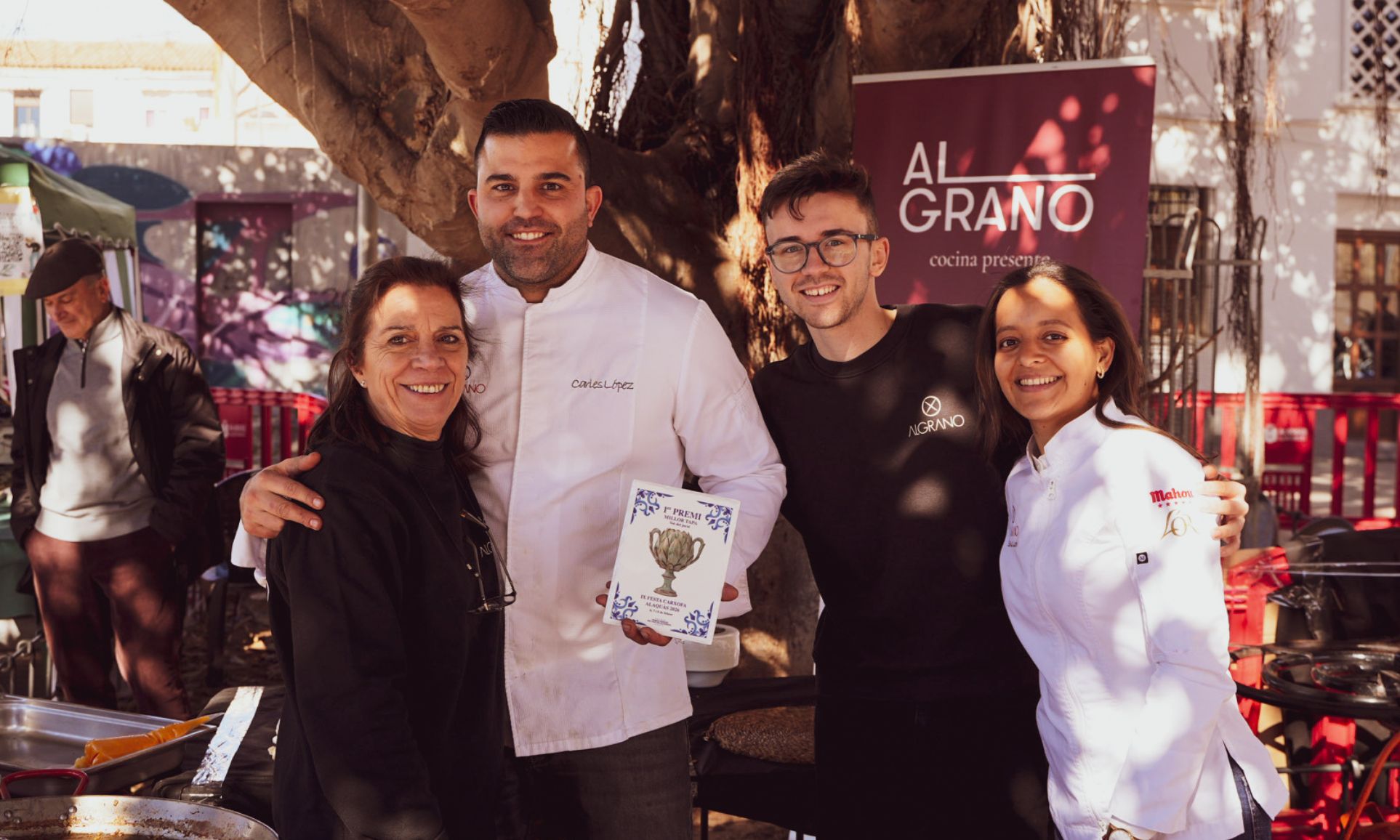 El restaurante Al Grano, popular por la elaboración de arroces y tapas mediterráneas en La Canyada, ha resultado ganador del Concurso de Tapas de la IX Festa de la Carxofa d’Alaquàs, que tuvo lugar este pasado domingo, 8 de febrero. A la cita concurrieron unas 4.000 personas, que no sólo pudieron degustar las tapas de los restaurantes participantes en el evento, sino también disfrutar de las distintas actividades culturales y artísticas realizadas en la Plaça Constitució del municipio, bajo el icónico Castell d’Alaquàs. La tapa de arroz de alcachofa, ropa vieja, yema trufada y caldo de ternera logró convencer al jurado profesional, imponiéndose a otros seis candidatos, que también presentaron un nivel considerable en sus propuestas, todas ellas con la alcachofa como ingrediente principal.