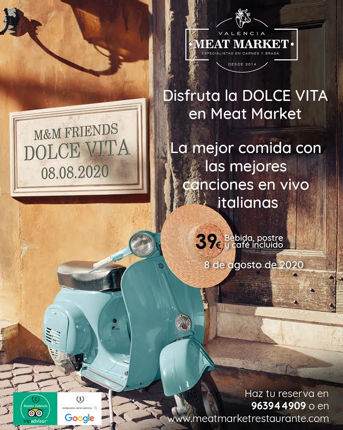 El sábado 8 de agosto, por su parte, vive la dolce vita en Meat Market con un menú muy especial con todo incluido.