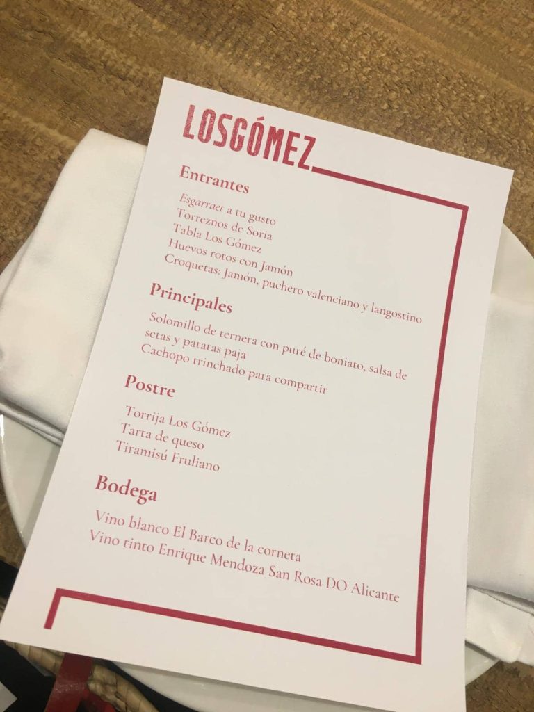 Carceller trasladó a los plumillas las expectativas y objetivos de este nuevo local, con una carta marcada por una cocina de proximidad, ejemplificada en las paellas y arroces presentes en carta (valenciana, arròs al forn, fideuà de pato) que pretenden dignificar la cocina tradicional en un entorno que en demasiadas ocasiones la ha rebajado cuando no directamente masacrado. Los Gómez cuenta con el aval de un buen producto que Keita (formado con Ferran Adrià) y su equipo trasladan a platos como el esgarraet, el torrezno de Soria, el cachopo (de cerdo ibérico y queso edam) o el trío de croquetas: jamón, puchero y langostino. Un menú contundente (tal vez demasiado) que dejaba a las claras la filosofía del local y su deseo de asentarse como una opción de calidad en un entorno en el que lamentablemente no existen demasiadas opciones factibles en la actualidad.