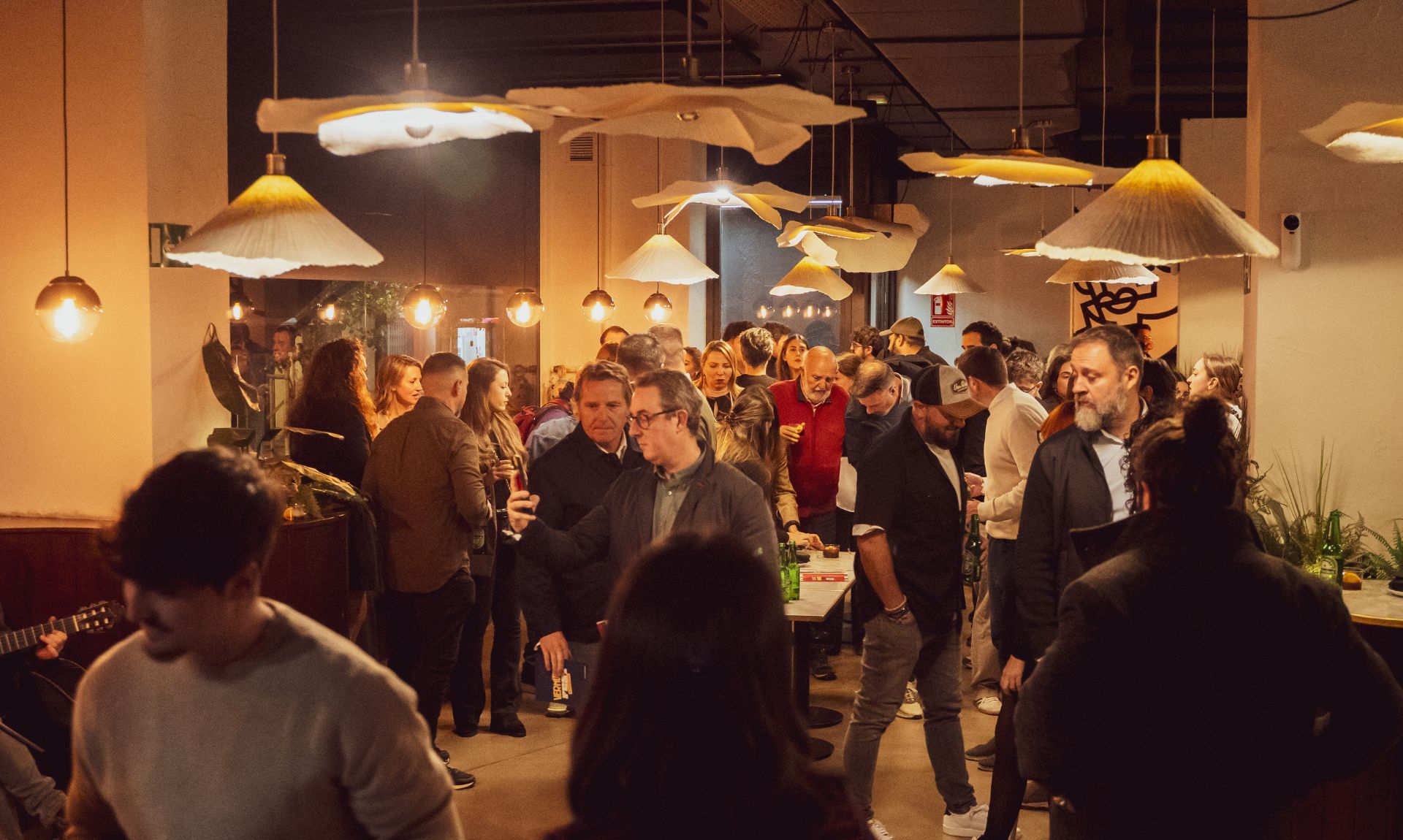 Vermúdez ha cumplido diez años y lo ha celebrado por todo lo alto. El restaurante, ubicado en el valenciano barrio de Ruzafa, reunió ayer miércoles, 26 de noviembre, a más de 250 personas entre compañeros de la prensa, proveedores, vecinos del barrio y amigos del sector para conmemorar una década de vermut, buen ambiente y consolidación en Valencia. La ocasión merecía poner en valor los diez platos más icónicos que han hecho popular al restaurante, desde el torrezno de pulpo a la tarta de queso, actuando de cabezas de cartel en esta original fiesta de aniversario, que se inspironen los festivales de música. Durante el Vermúdez Fest, los platos fueron saliendo al escenario en diferentes horarios, relatando la historia de la casa.