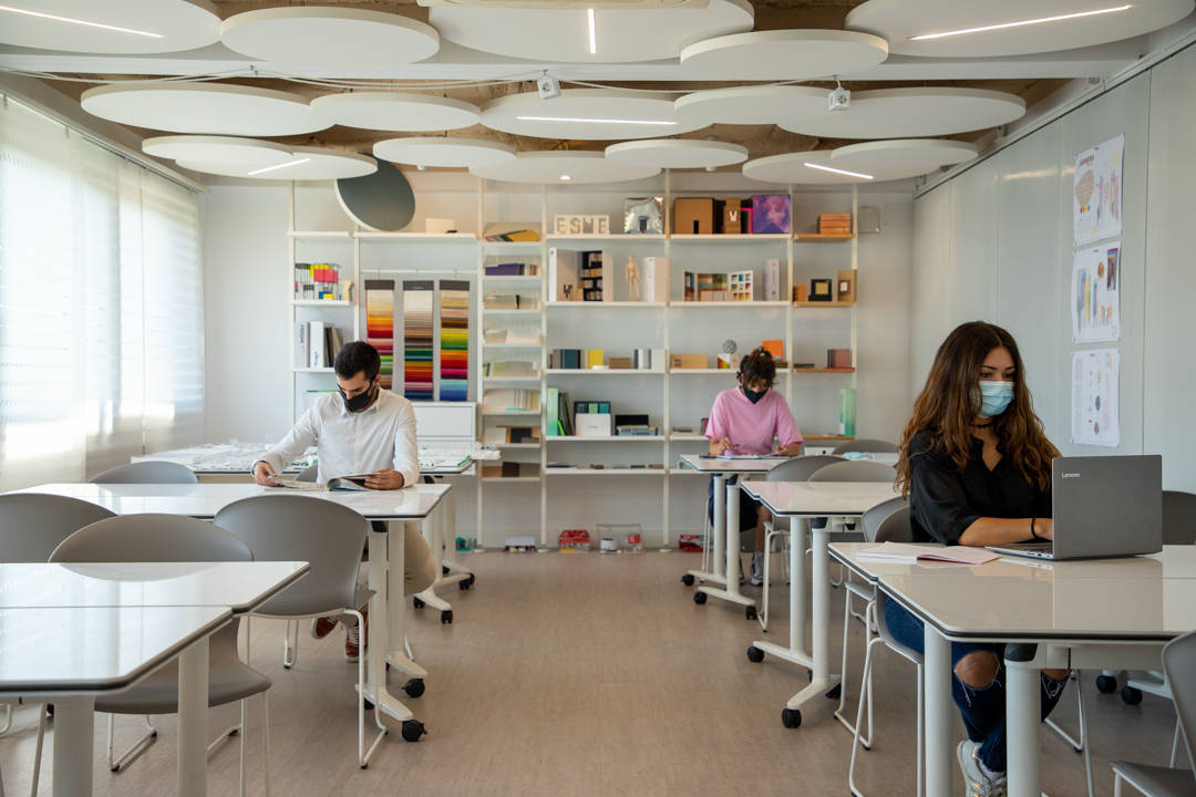 ESNE, Escuela Universitaria de Diseño, Innovación y Tecnología, cuenta este curso con la nueva Aula Smart, concebida y diseñada colaborativamente por los alumnos de todos los cursos de su Grado en Diseño de Interiores. Un proyecto que nació de una propuesta para que los estudiantes conceptualizaran su aula de trabajo ideal en cuanto a iluminación, materiales, disposición y mobiliario, para la que han contado el apoyo de Actiu, aunando talento, diseño e industria. Una nueva aula que cobra ahora más relevancia que nunca, con las nuevas medidas sanitarias, de distanciamiento social y de fomento de lo digital que se imponen debido a la pandemia del Covid-19.