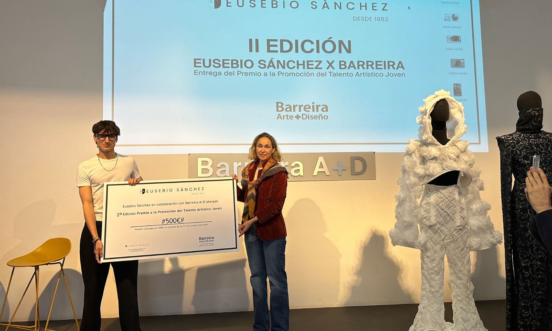 En esta edición, el premio, entregado por Pampa Ballester, directora general de Eusebio Sánchez, ha sido otorgado a Diego Sempere, con La luz bajo la piel. Su propuesta ha destacado por integrar el bordado como elemento constructivo, articulando un diálogo coherente entre tradición y diseño contemporáneo, al tiempo que explora el vínculo entre creación y bienestar emocional, entendiendo el proceso textil como un espacio de expresión y reconstrucción personal. Junto a él, los finalistas María Moreno y Ascanio Pezzini han sido reconocidos por la calidad técnica de sus propuestas.