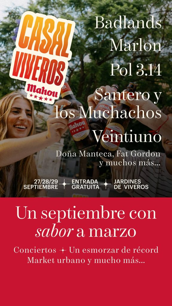Este viernes 27 de septiembre, el Casal Viveros Mahou abrirá sus puertas en los Jardines de Viveros para dar comienzo a un fin de semana repleto de celebración, gastronomía y mucha música gracias a la colaboración de Vibra Mahou, la plataforma de música Mahou Cinco Estrellas que continúa impulsando los mejores directos en Valencia.