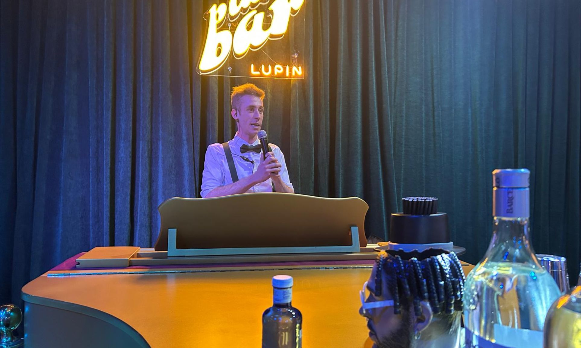 Piano Bar Lupin, local de ocio ubicado en el sótano del Mercado de Colón ofreció el pasado jueves una velada consistente en un taller de coctelería al que acudieron prensa e instagrammers, dispuestos a descubrir los secretos de la coctelería clásica y contemporánea. El taller fue desarrollado por el equipo de Lupin Piano Bar, que cuenta con una carta temática de coctelería de autor. De la mano (nunca mejor dicho) del bartender Sergio Giménez, los asistentes a la velada recorrieron de forma breve los principales hitos de la historia de la coctelería y ejecutaron dos cócteles basados en el mundo de la música:
