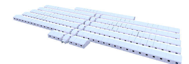 Se tra­ta, ade­más, de hos­pi­ta­les de cam­pa­ña dise­ña­dos para su fun­cio­na­mien­to duran­te gran­des perio­dos de tiem­po, for­ma­dos por con­te­ne­do­res des­ple­ga­bles conec­ta­dos entre sí median­te túne­les.