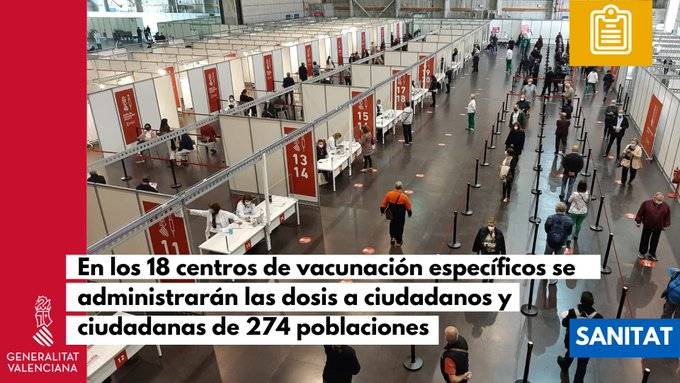 Según ha manifestado la consellera de Sanidad, Ana Barceló, “el proceso de vacunación a toda la población de la Comunitat Valenciana está transcurriendo a buen ritmo y de forma ágil”, y ha señalado (en referencia a ayer lunes) que “hoy es un gran día para la sociedad valenciana, un día histórico, porque seguimos avanzando en la inmunización frente al coronavirus y, entre todos, conseguiremos poner fin a esta pandemia”. Pues cabe recordar que este lunes arrancaban los cuatro grandes centros de vacunación masiva en la Comunitat Valenciana.