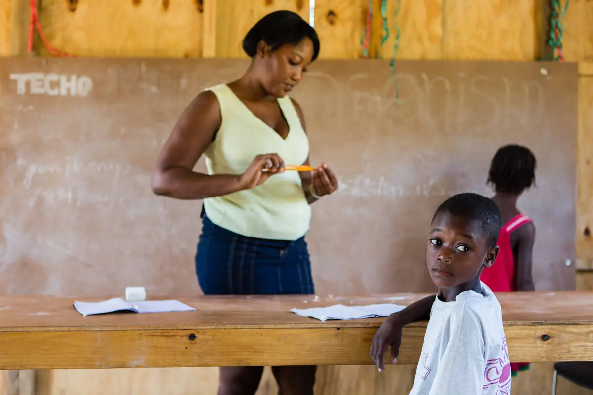Una profesora da clase en Haití. Foto: Alberto Pla