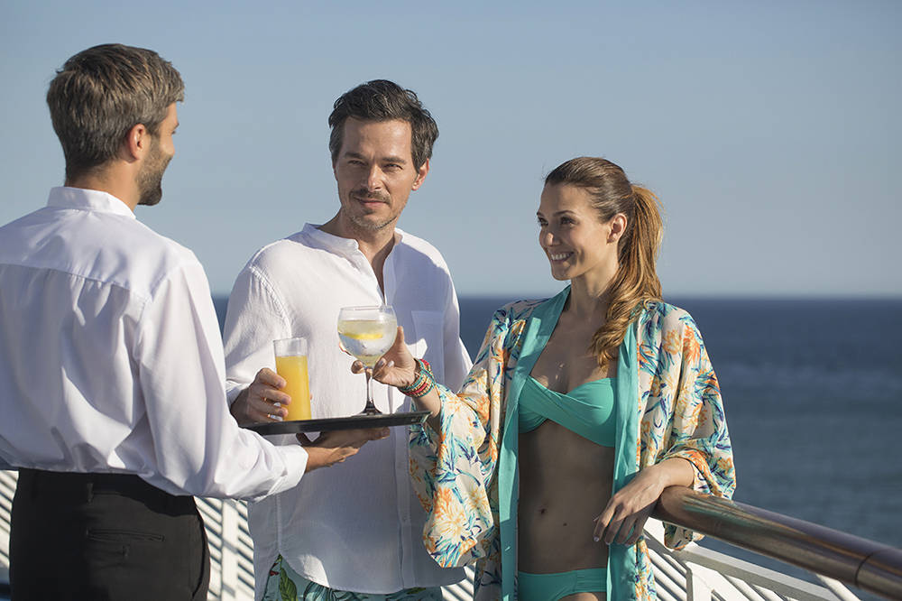 Los dife­ren­tes buques cuen­tan con tien­da para rea­li­zar tus com­pras, terra­zas exte­rio­res y el mar como telón de fon­do para hacer que el via­je sea aún más agra­da­ble.