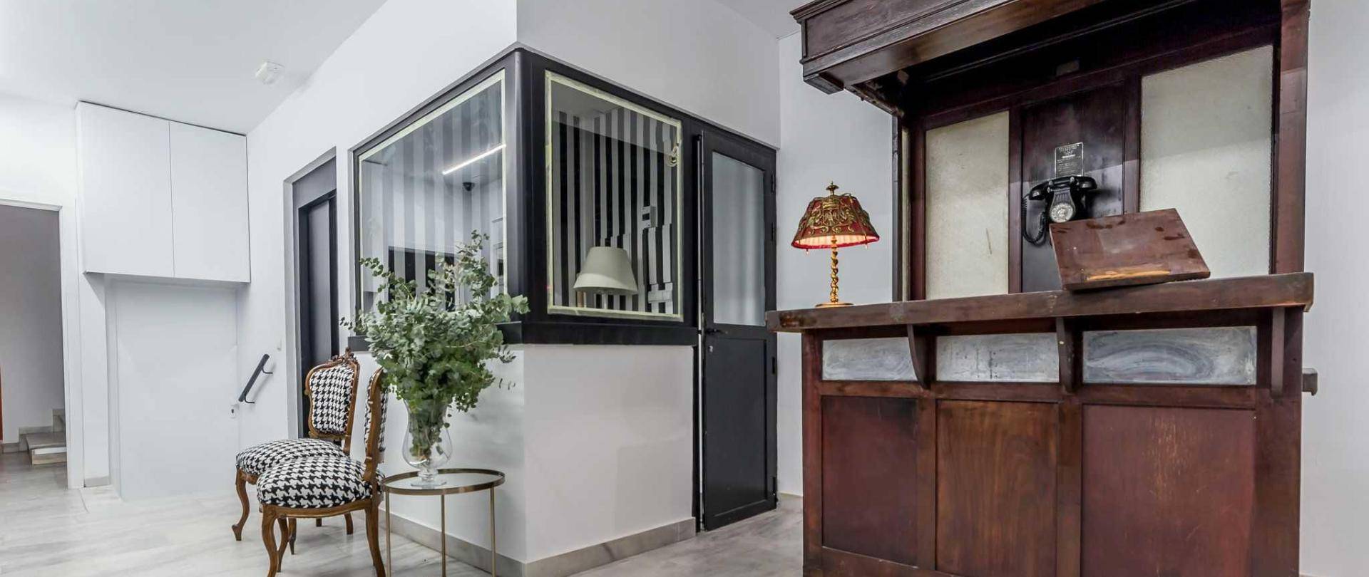 Una vez se atraviesa la fachada que comparten con el consulado de Italia y el restaurante El Papagayo, la recepción resulta simplemente majestuosa. Antes de la intervención, era un pasaje casi lúgubre, pero tras la misma hay tres ambientes que invitan a conocer más. Recuperar, restaurar e integrar el mobiliario antiguo, que estaba desechado y en desuso, fue otra de las claves, sobre todo al tapizarlo con la contemporaneidad de la pata de gallo y las rallas blancas y negras tan Saint Tropez, con formatos grandes y terciopelos, para marcar una diferencia.